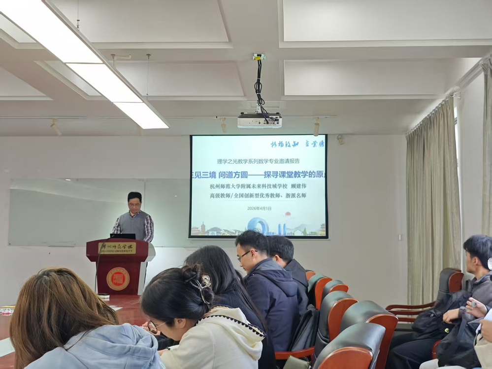 为更好适应人工智能时代的教育变革,聚焦新时代教师教学中的重点难点问题,助力教育硕士课堂教学能力提升,应唐笑敏教授邀请,3月31日下午杭州师范大学附属未来科技城学校副校长顾建伟作了题为“三见三境,问道方圆——探寻课堂教学的原点”的专题报告。本次讲座由名师工作室成员、硕士生导师王罗那博士主持,学科教学(数学)方向教师李婉玥博士等以及学科教学(数学)专业硕士参与本次活动。